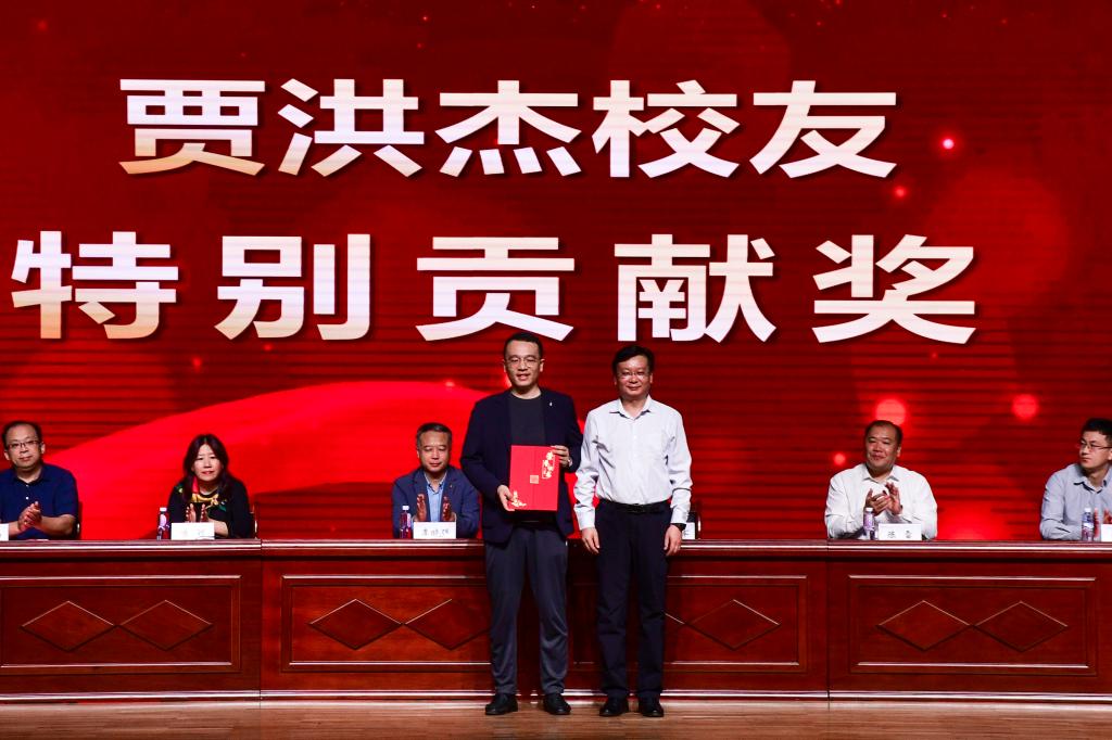 学院党委书记杨乃军为贾洪杰校友颁发特别贡献奖。