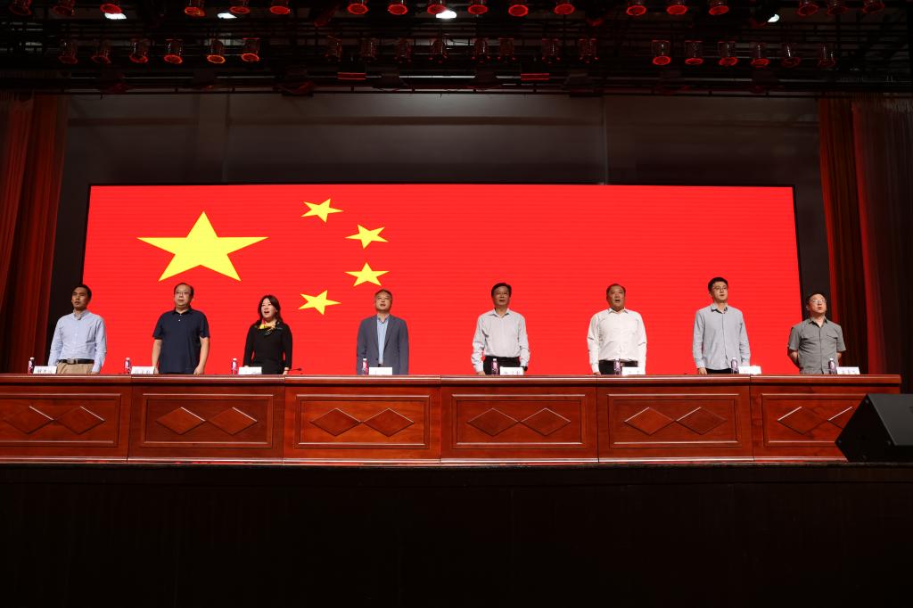 开学典礼在雄壮的国歌声中拉开帷幕。