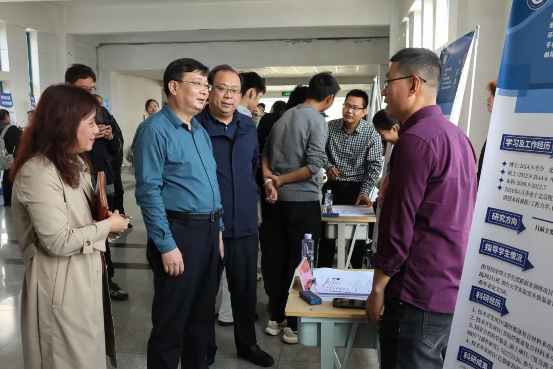 活动现场人头攒动、双选互动高效有序。学生们手持精心准备的简历,积极与老师交流,了解课题组岗位需求,探讨科研项目研究前景。老师们耐心解答学生的问题,从研究方向、科研进展、指导规划等方面阐释科研需求,详细介绍项目的创新点和应用前景,引导学生将科学研究与基础理论知识、科技前沿相结合。