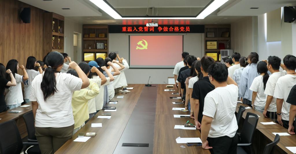 “我志愿加入中国共产党,拥护党的纲领,遵守党的章程……”毕业生党员在副科级辅导员苗毅老师的带领下举起右拳,庄严宣誓,以铮铮誓言凝聚起奋进的力量。