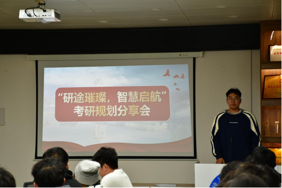 为帮助有志于考研的同学们能够更好地做好准备,科学备考,有效规划,4月17日晚,学院学生刘泽鹏为同学们做了一场关于考研择校和备考规划的经验分享会。