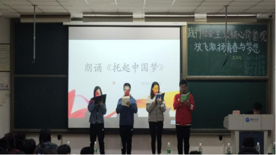 为激发同学们的爱国热情,明确社会主义核心价值观的内容和精神本质,烟台大学环境与材料工程学院于2019年11月6日在综合楼107举办了“践行社会主义核心价值观,放飞激扬青春与梦想”主题活动。