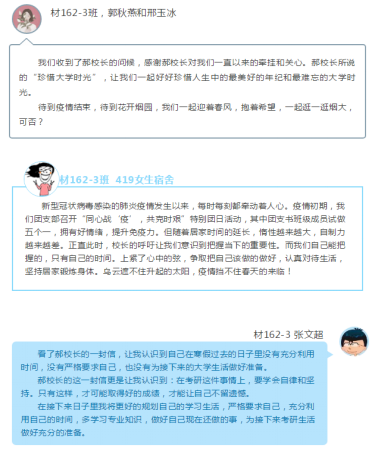 我院材162-3班是郝校长所联系的班级,郝校长经常关心同学们的学习,生活。由于疫情的影响,无法与同学们见面交流,于是写了一封对同学们满含期望的信,让我们一起来感受一下。