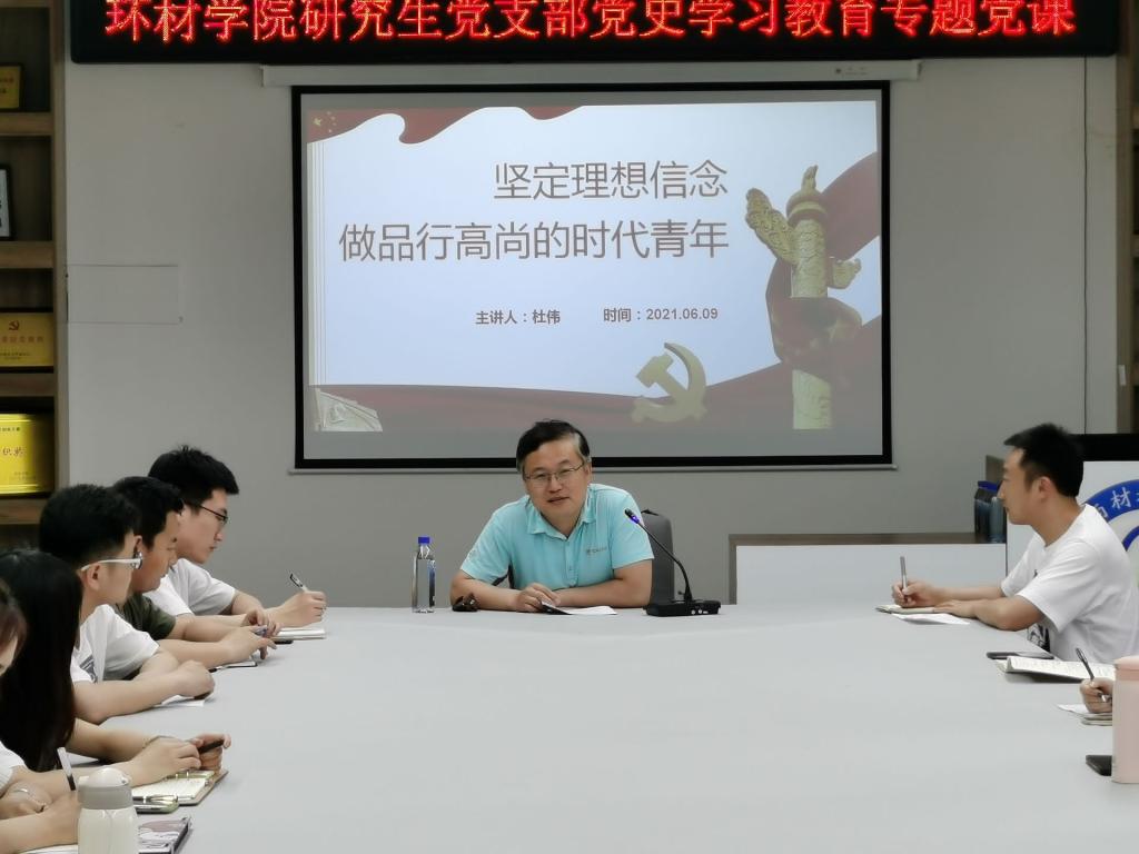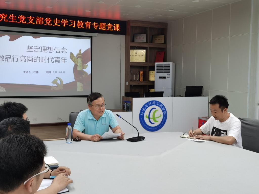 为广泛开展党史宣传教育,确保研究生党支部党史学习教育取得时效,发挥党组织的引领作用。6月14日,环境与材料工程学院杜伟院长为研究生党支部作“坚定理想信念,做品行高尚的时代青年”专题党课。学院研究生党支部全体党员参加此次会议。