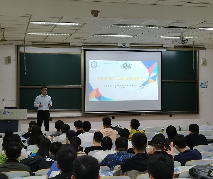 为给2022届毕业生提供广阔就业平台,激发应届毕业生就业热情,缓解毕业生就业难的问题,烟台大学环境与材料工程学院团委积极对接招聘单位,于10月9日下午3:00在综合楼108举办了杰瑞环保2022届校园招聘宣讲会,杰瑞环保公司人力资源经理宋宁军和公司人事部门相关老师参加了此次校园招聘。