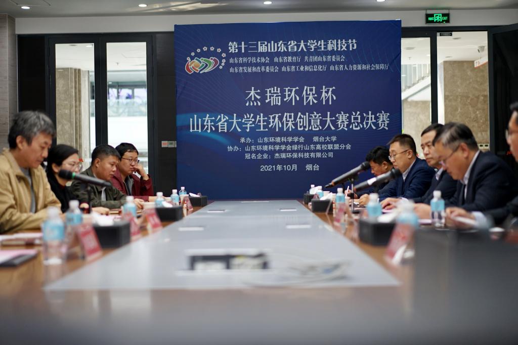 10月24日,由山东环境科学学会、烟台大学承办,山东环境科学学会绿行山东高校联盟分会协办的第十三届山东省大学生科技节——“杰瑞环保杯”山东省大学生环保创意大赛在烟台落下帷幕。山东环境科学学会秘书长季明、杰瑞环保集团副总裁孙天东、烟台大学环境与材料工程学院院长杜伟出席大赛并致辞。烟台大学环境与材料工程学院党委书记王少波主持。来自全省23所高校100余名参赛选手进行了线上视频答辩。