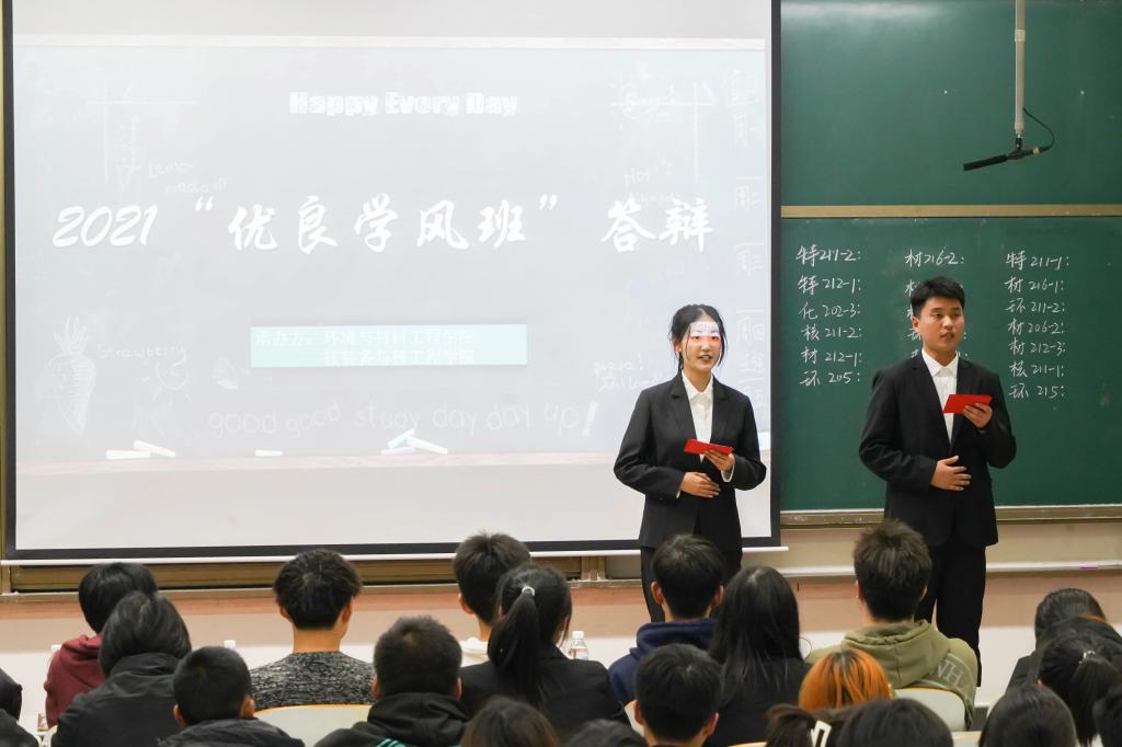 为认真贯彻落实全国教育大会精神和全国高校思想政治工作会议精神,众志成城、全力以赴,贯彻落实学校“文明烟大”的管理宗旨,加强教学期间学生学风建设,增强学生自律意识和能力。由共青团烟台大学委员会主办、环境与材料工程学院和核装备与核工程学院承办的,以“力行自律,一心移疫”为主题的优良学风班级答辩会于11月25日在综合楼108开展。环材学院、核学院、生科学院,以及计控学院、光电学院、中德特里尔学院学生会主席参加本次答辩会。参加答辩的班级有中德211-2、化202-3、环材212-2、环材211-1、核211-2等十九个班级。