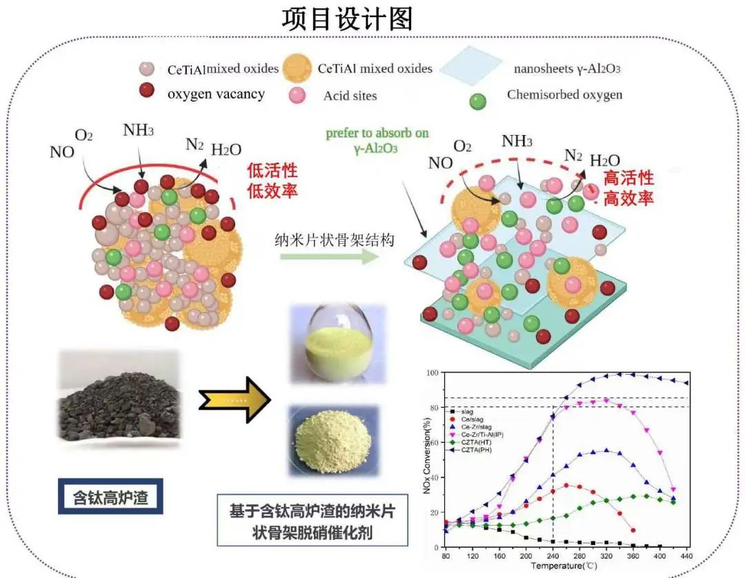 工业迅速发展带来一系列污染问题,尤其是氮氧化物(NOx)的排放,导致了酸雨和光化学烟雾来画动画,此外冶炼钢铁的过程中产生的大量含钛高炉渣固废没有得到高效的利用,造成了土地资源的严肃浪费和水污染。为解决这些问题,他们研发出了新型片状骨架结构脱硝催化剂。