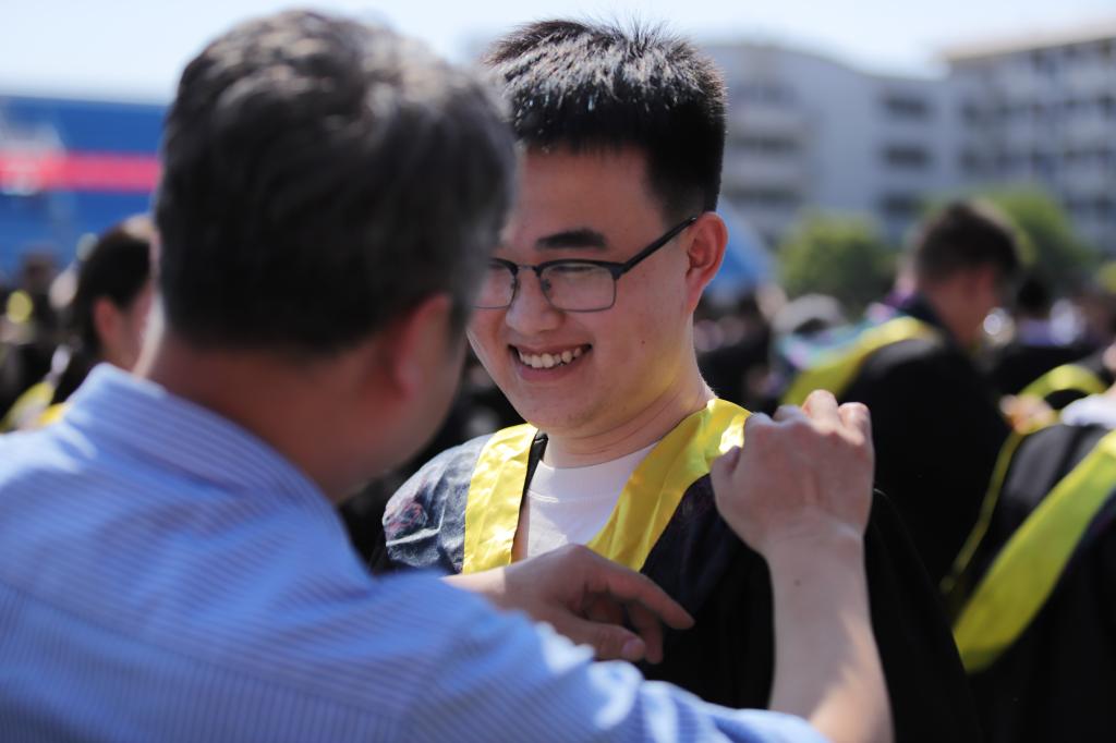6月15日烟台大学举行2023届毕业典礼,学院党委书记杨乃军、院长李晓强专门来到典礼现场与毕业生依依告别,帮助毕业生整理学位服,将浓浓的不舍化作一份份祝福。此外,学院还为2023届优秀毕业生定制了专属毕业礼物——定制U盘。难忘母校,难忘师恩,毕业生代表也向辅导员和班级导师献花以表感激之情。“我太爱烟台啦️!爱这座生活节奏并不快有海有雪的浪漫城市;爱烟台大学的每一处细节,它为了毕业生拍照粉刷红字,为了毕业生安排爱心车队搬送行李;爱烟大的每一个角落;爱环材给我关心和支持的每一个老师;爱我的每一个学长学姐学弟学妹;爱我的每一个朋友们。”学院研究生会主席胡文文离开校园前,在朋友圈中感叹道。期待同学们常回家看看,烟台大学环材学院永远是同学们温馨的港湾。