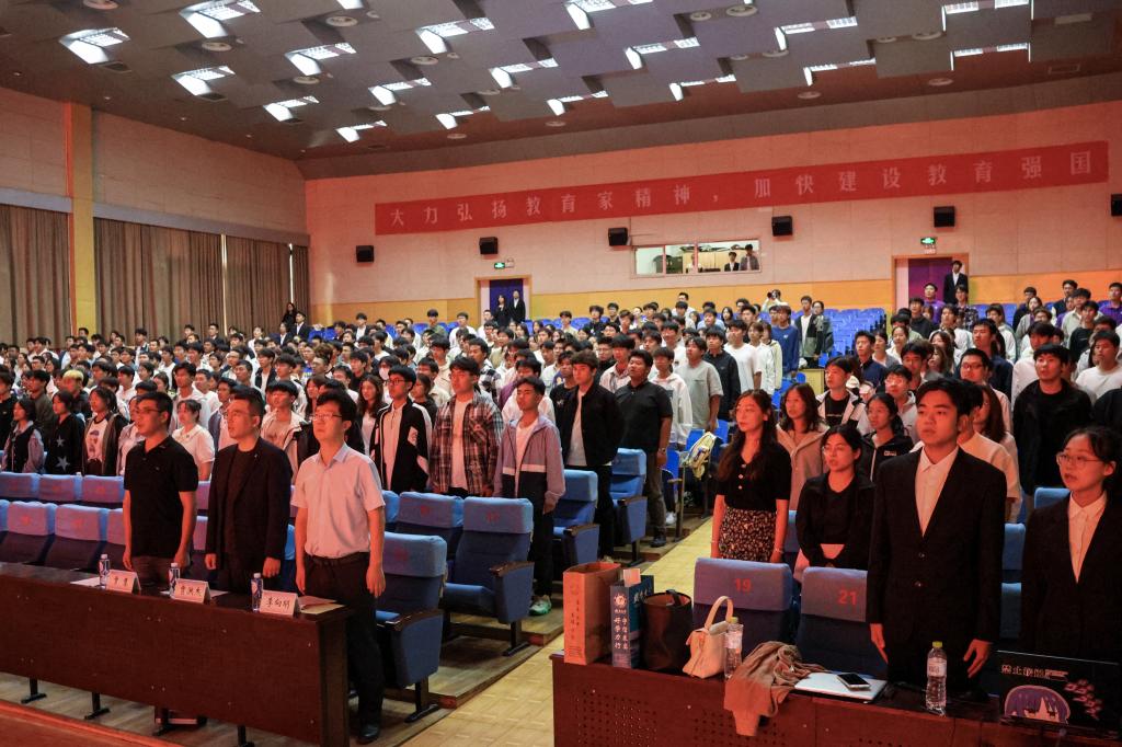 在校生代表2022级硕士研究生李秋雨分享了自身学习感悟和收获,号召新生们以梦为桨,扬帆起航,以实干的精神、担当的态度,在三元湖畔书写更加精彩的学习生涯和人生篇章!