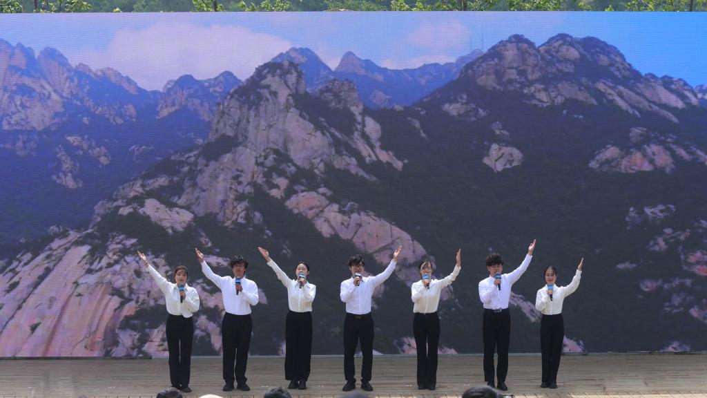 活动现场烟台大学师生带来诗朗诵《万物共生 山海和鸣》,以诗歌传递生态保护理念,表达对自然的热爱,对参与、支持、关心生态环境保护事业的社会各界致以崇高的敬意。