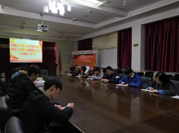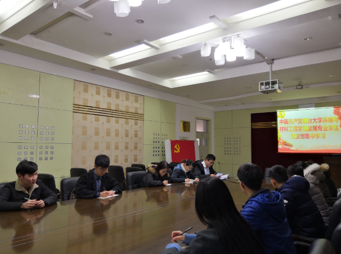 党的为全面贯彻落实党的十九大精神,深入践行“两学一做”,烟台大学环境与材料工程学院金属专业学生党支部于2018年1月9日在学院会议室337开展了“党的十九大精神与党章”的专题学习。