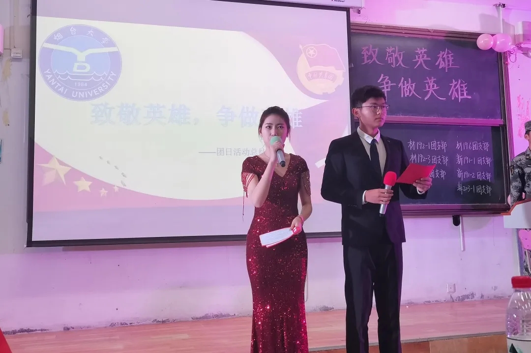 活动伊始,在一段中印边境冲突的爱国视频中拉开了活动的序幕,陈红军、肖思远、王焯冉、陈详榕四名烈士的英勇事迹令同学们热泪盈眶,极大地激发了同学们向爱国烈士学习的热情。接下来,全体成员起立,为牺牲的人民英雄默哀三十秒钟。随后,由烟台大学教官团带来军体表演,同学们惊叹于教官们的飒爽英姿,鼓起热烈的掌声。而情景剧《英雄赵一曼》通过惟妙惟肖的表演,向同学们展现了抗日英雄赵一曼的英雄事迹,进一步加深了同学们对爱国主义和英雄主义的认识。歌曲《我要你》、《有点甜》、《等到明天以后》,舞蹈《霍元甲》、《你最最最重要》将活动的气氛推向高潮。节目表演之余,各班团支书也对各班的子活动做出了客观准确的总结。