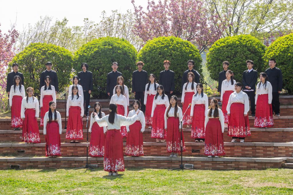 开幕式上,环材学子带来的诗朗诵《绿动中国 向光而行》以铿锵之声传递生态保护的坚定信念;舞蹈《夜泊秦淮》用灵动的身姿演绎人与自然和谐共生的诗意画卷;合唱《我们是大自然的孩子》以纯净歌声唤起全场共鸣。