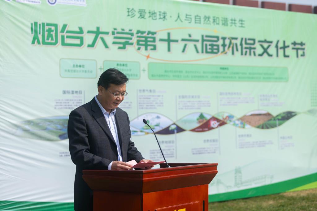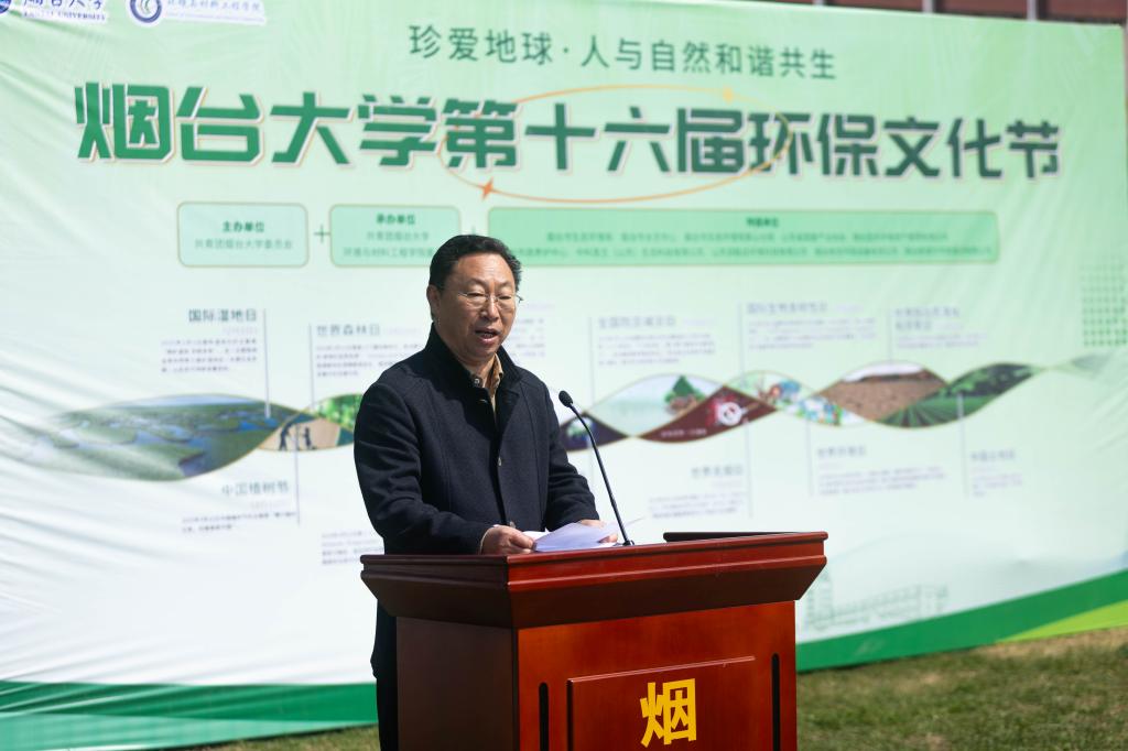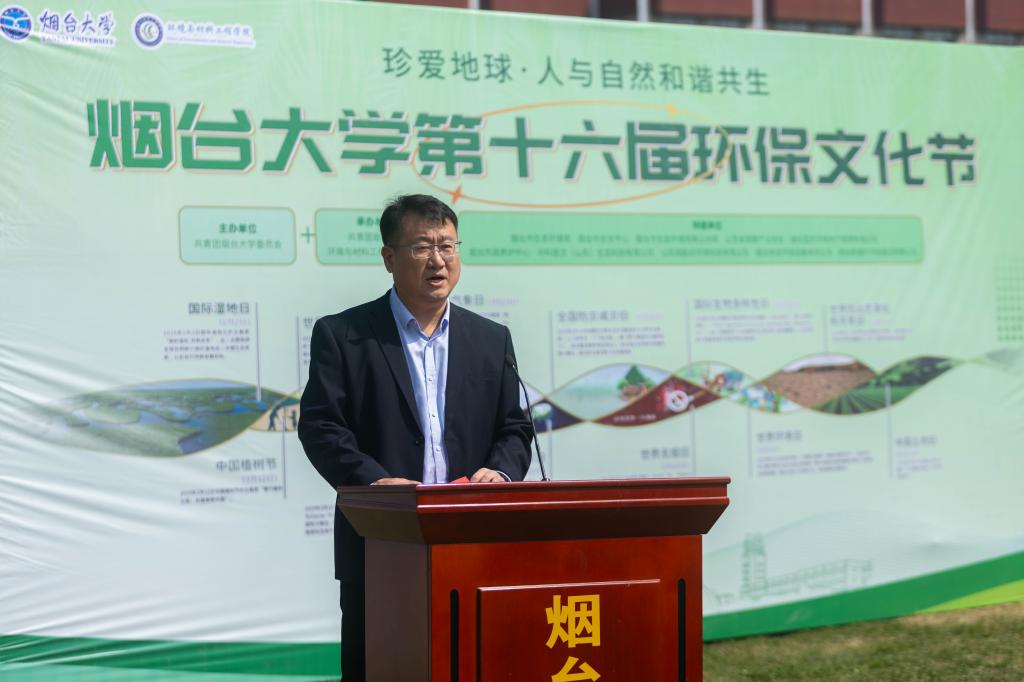 环境与材料工程学院党委书记杨乃军在致辞中表示,环保文化节是烟台大学践行习近平生态文明思想的重要载体,也是服务国家“双碳”战略的生动实践。近年来,学院在黄河流域生态保护、固废资源化等领域取得显著成果,希望师生争做绿色理念传播者、黄河战略践行者、美丽中国筑梦者,将个人理想融入国家战略,让绿色成为高质量发展的鲜明底色,谱写人与自然和谐共生的现代化新篇章。